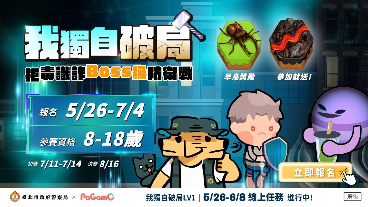 主旨: 轉知臺北市政府警察局114年「我獨自破局:拒毒識詐Boss級防衛戰」問答任務及電競賽一案,請鼓勵學生踴躍報名參賽,請查照。