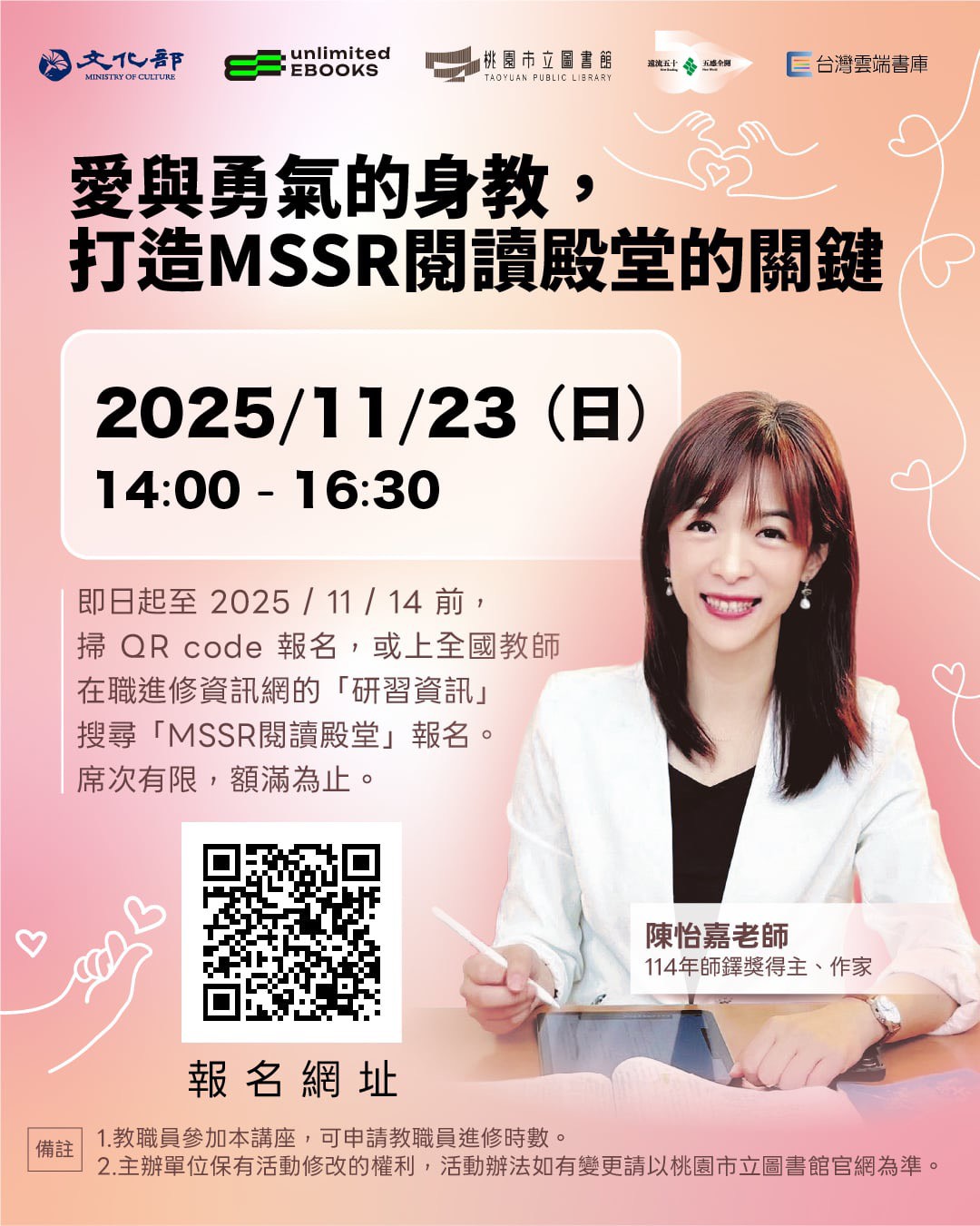 轉知「愛與勇氣的身教,打造MSSR閱讀殿堂的關鍵」講座