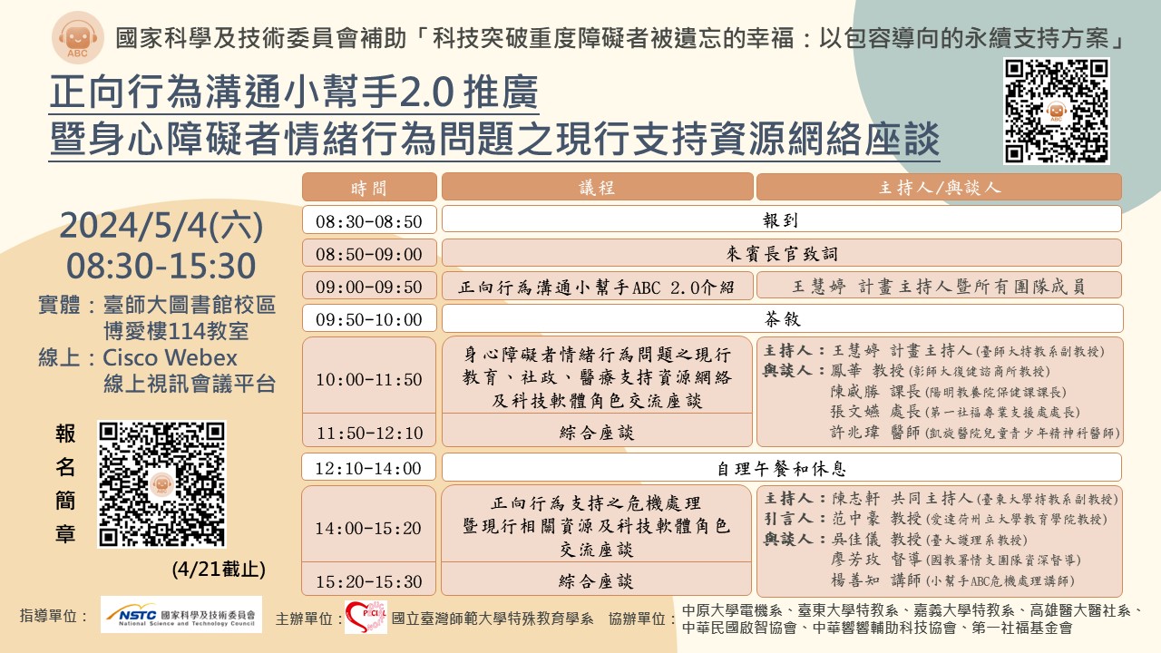研習~正向行為溝通小幫手2.0 推 廣暨身心障礙者情緒行為問題之現行支持資源網絡座談(國立臺灣師範大學)