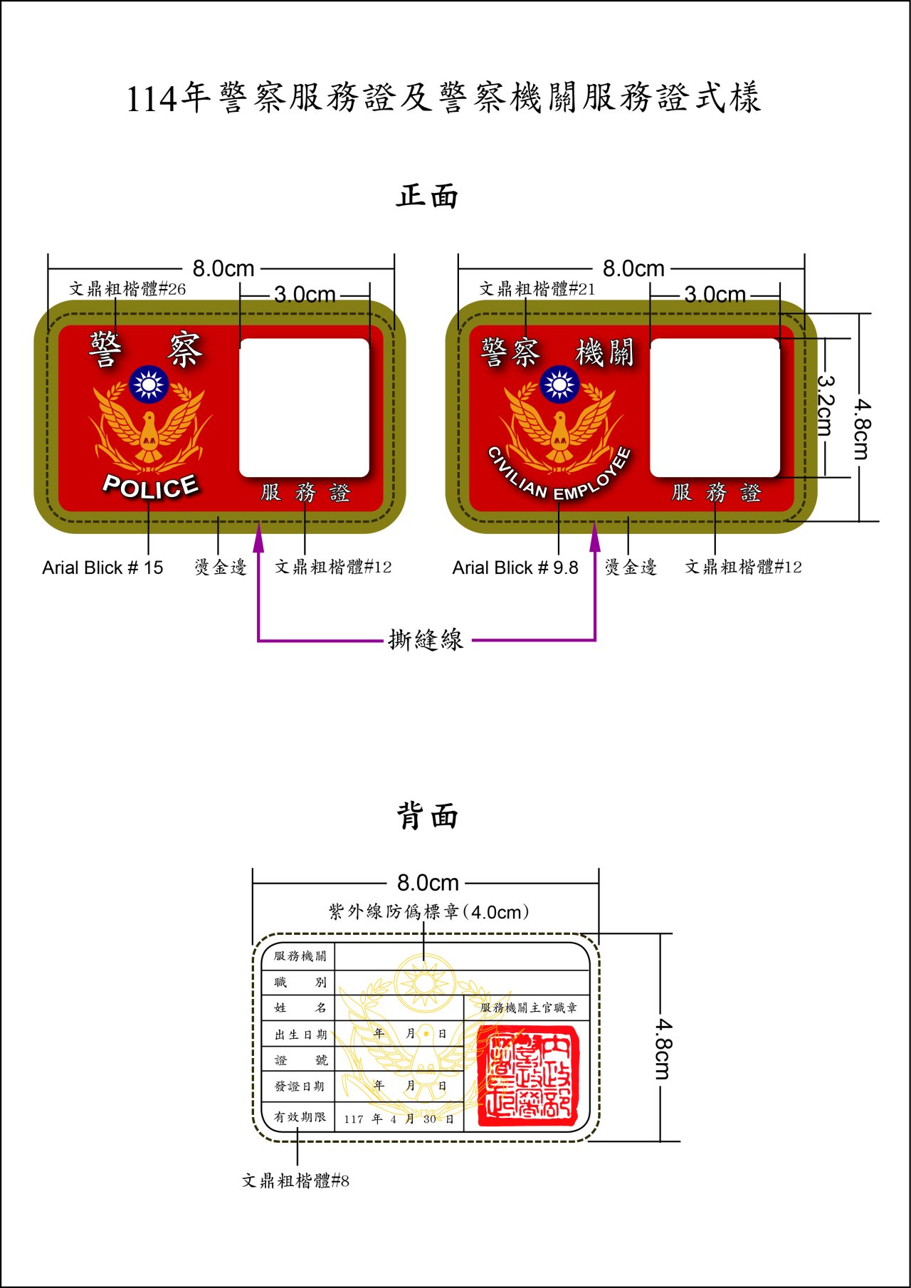 轉知警察人員服務證於114年5月1日換發,舊證同時作廢